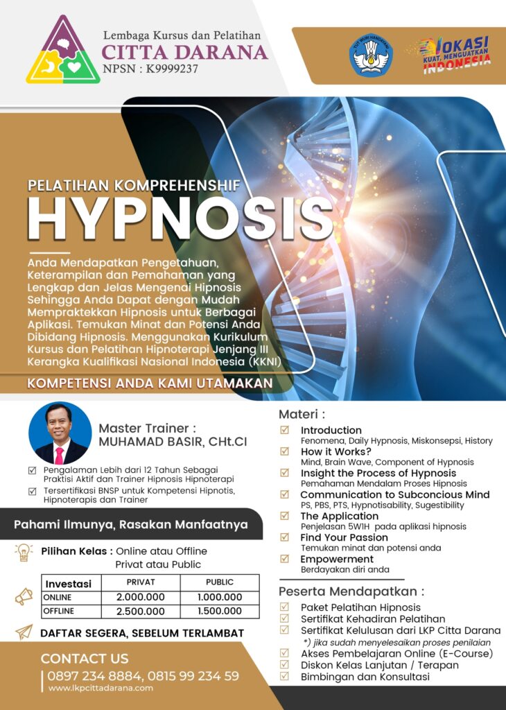 Pelatihan Basic Hipnosis, Practical Hypnotherapy, Proffesional Hypnotherapist